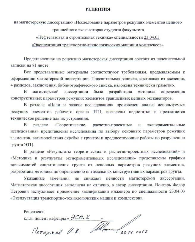 На рисунке 1 приведен пример рецензии на магистрескую диссертацию.